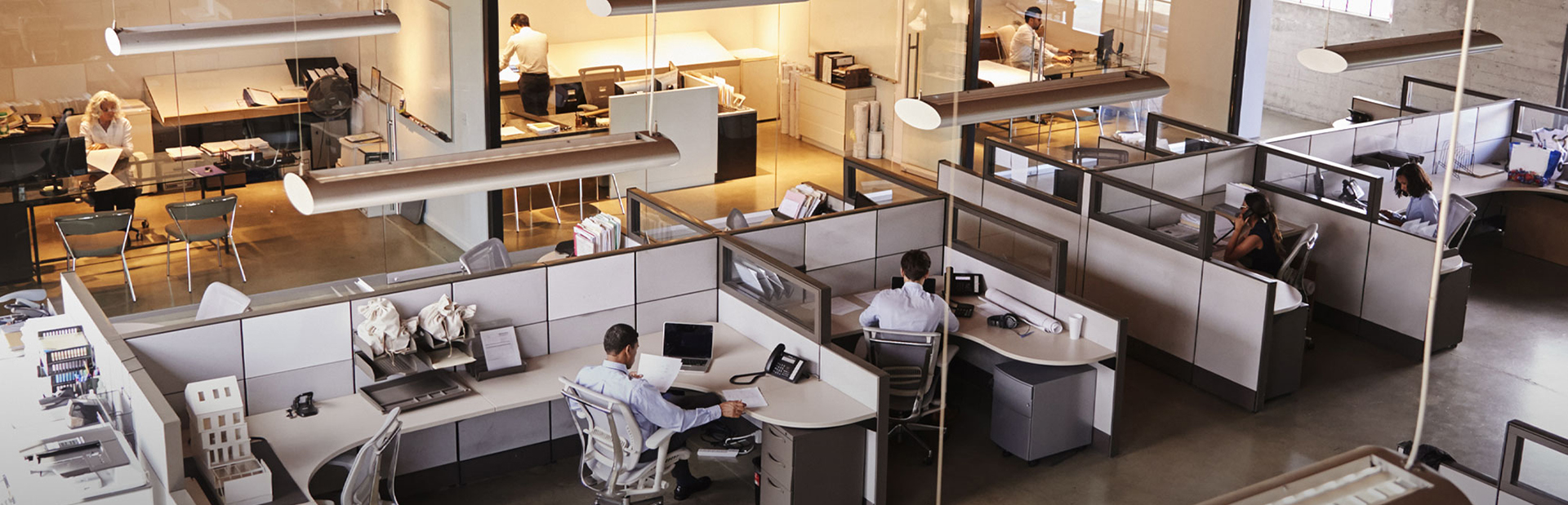 Clusters de bureaux sur une gamme d'immeubles de grande et basse hauteur